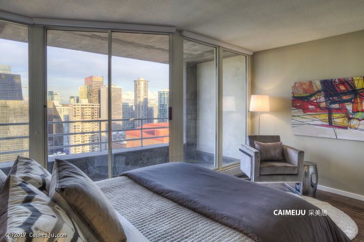 位于欧陆广场(Continental Place)的高层住宅单元,3卧2.5卫,1700平方英尺起居空间,位于西雅图最理想的建筑内。玻璃墙可毫无遮挡地观看美景,普吉特湾(Puget Sound)、奥林匹克山(Olympic Mountain)、太空针塔(Space Needle)和湖联盟(Lake Union)的美景尽收眼底,还配置了休闲阳台。