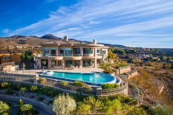 明星级房产,现代风格,曲线别致的定制豪宅,拥有11,133平方英尺的独特设计空间, 俯临Anthem乡村俱乐部。主屋前门有柱廊,拥有两层楼的宽敞前厅,盘旋扶梯通向二楼。二楼有办公套间和主卧套间,峡谷风光尽收眼底。此外还包含一间独立两卧客屋。尽享一览无余的全景风光。真正的空中宫殿。